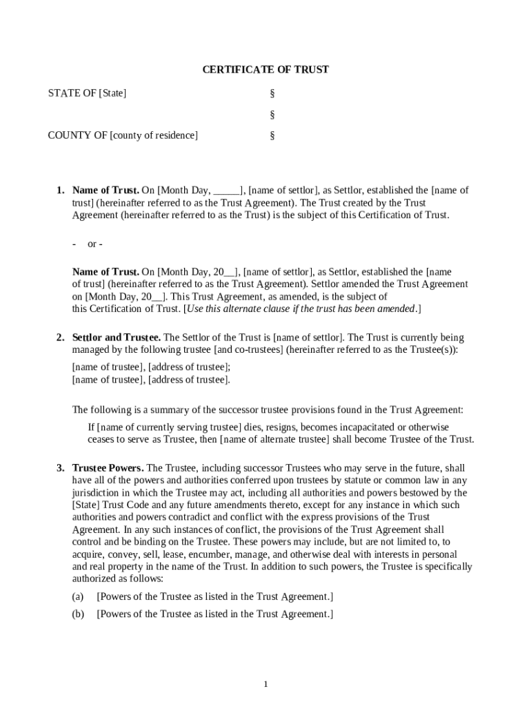 Certification of Trust 1 PDF Trust Law Deed Of Trust (Real Estate)