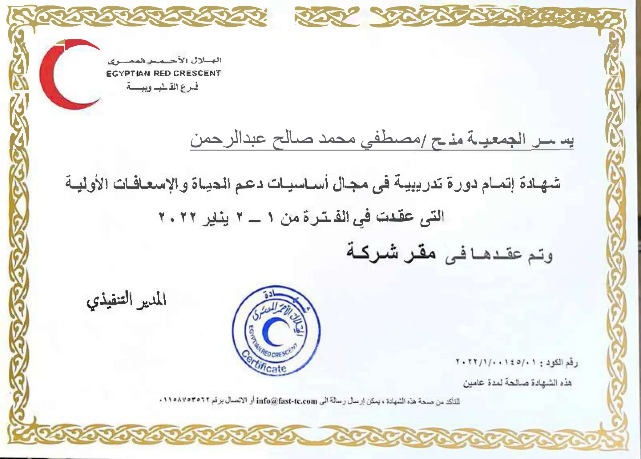 Talah Al Najdi MC Certificate of Volunteering PDF
