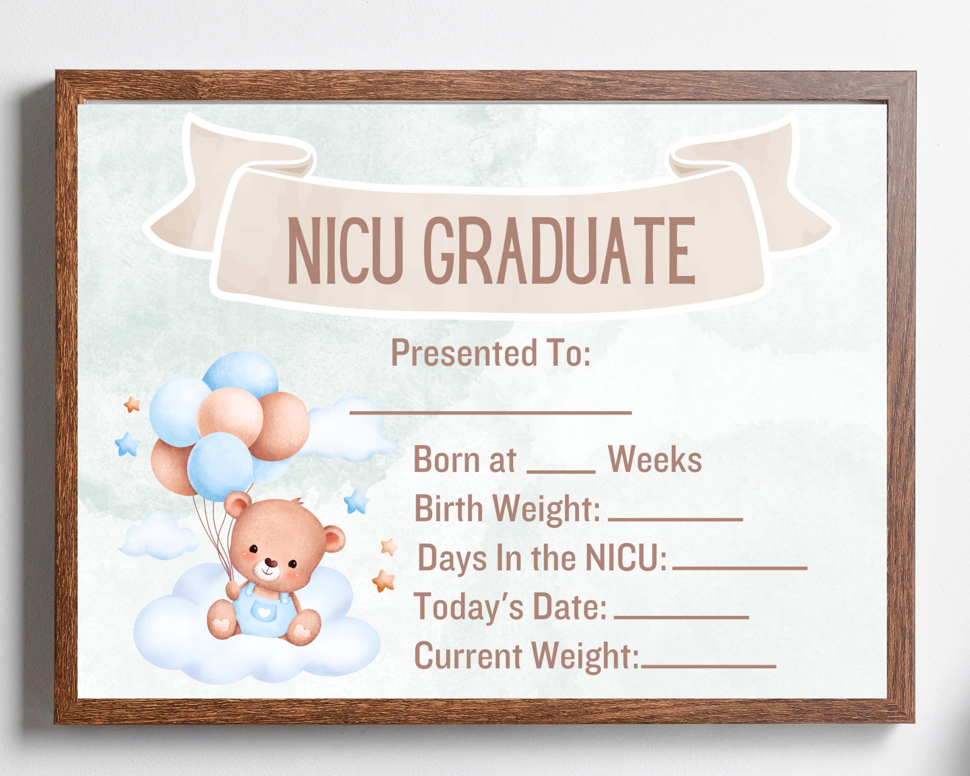 NICU Baby Graduation Certificate Printable Keepsake Sign Gift for