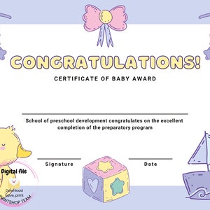 Printable Awards Certificate Digital Download Printable PRE SCHOOL