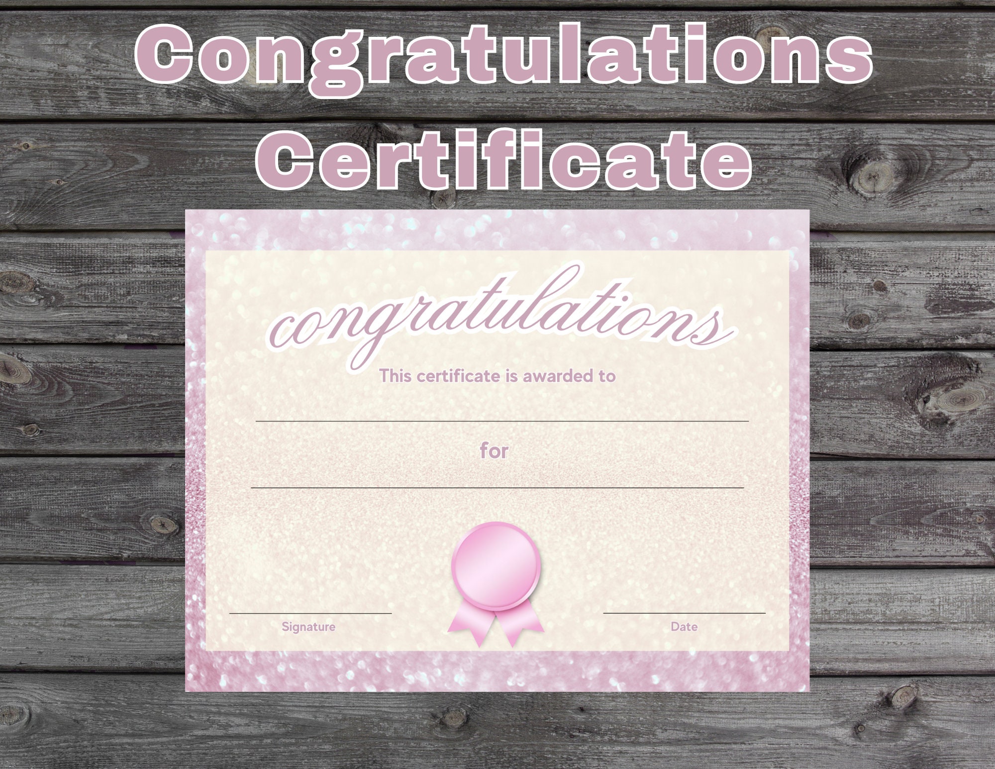 Pink Sparkly Printable Certificate for Girls Teacher Student Child