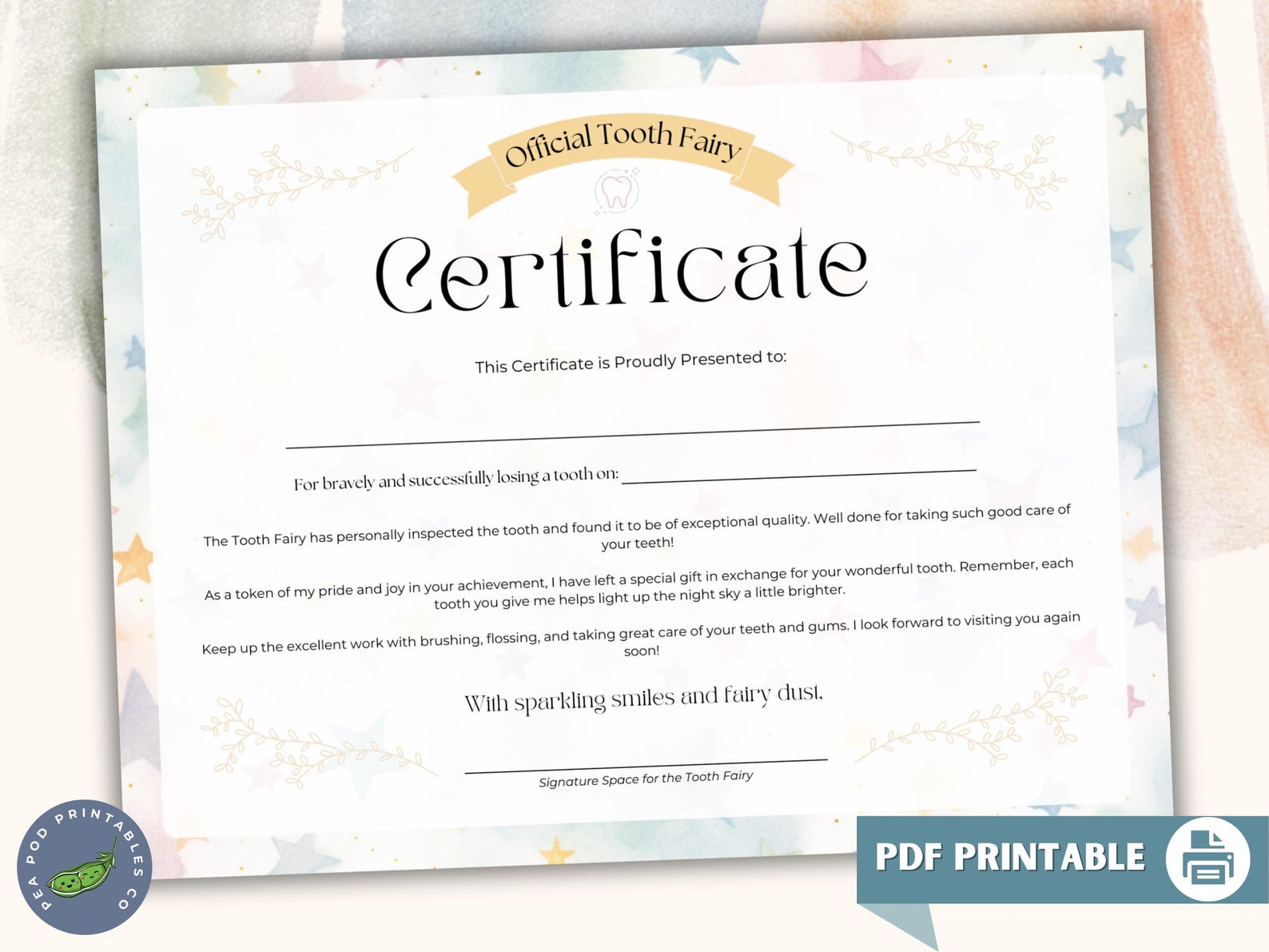 Tooth Fairy Certificate for Losing Tooth Girls Award Boys Award