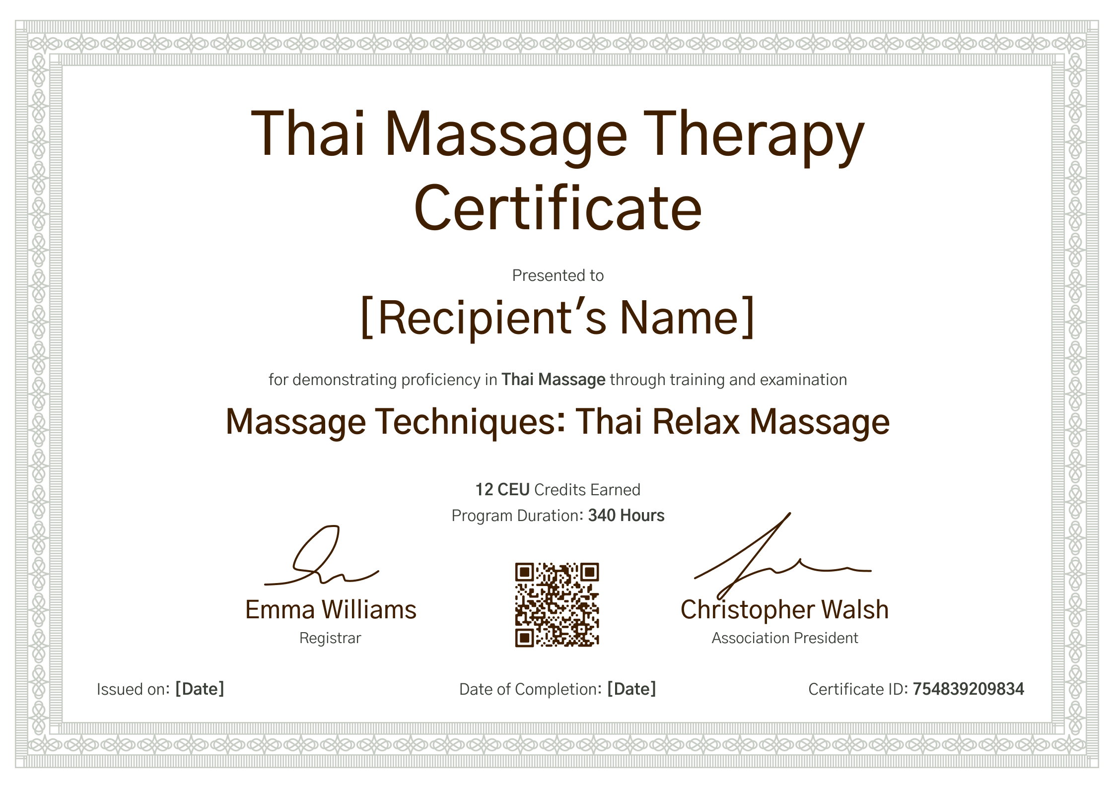 Professional and authoritative massage therapist certificate template