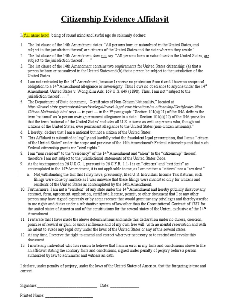 Non Citizen Nationality Affidavit PDF Citizenship Of The United
