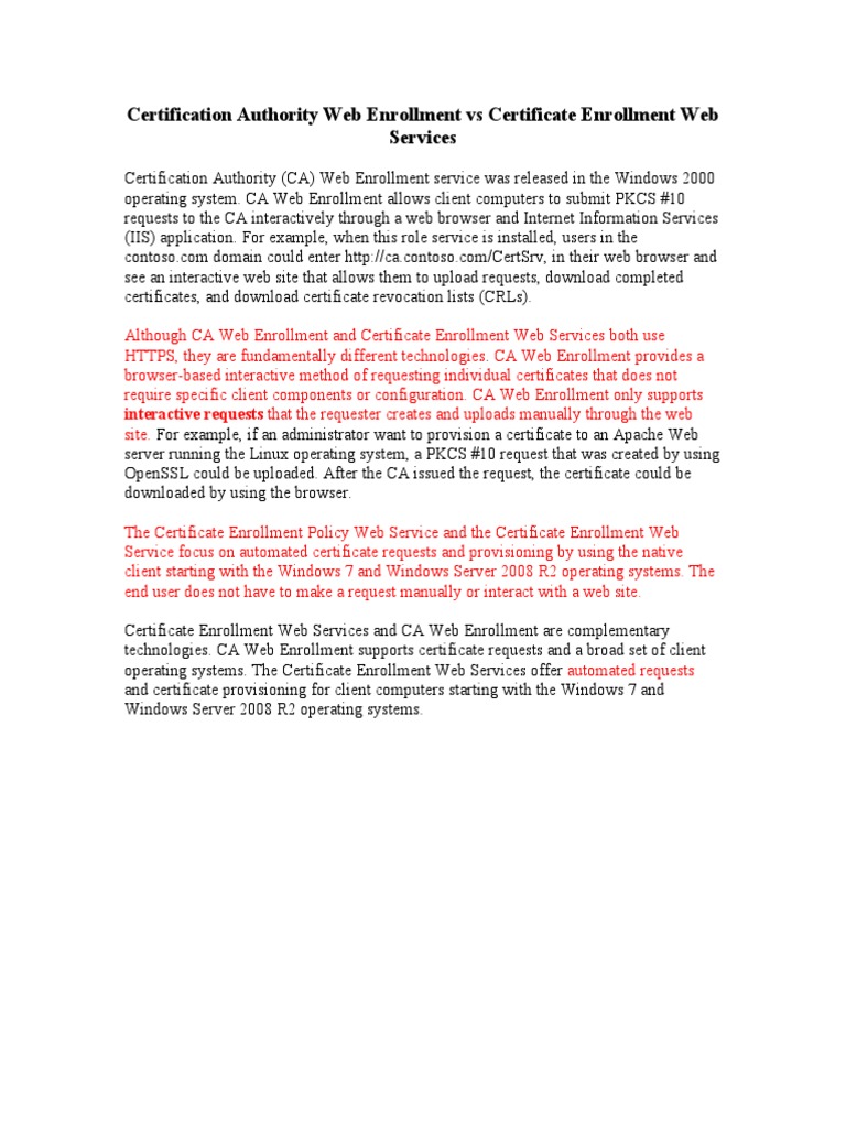 Certification Authority Web Enrollment Vs Certificate Enrollment Web