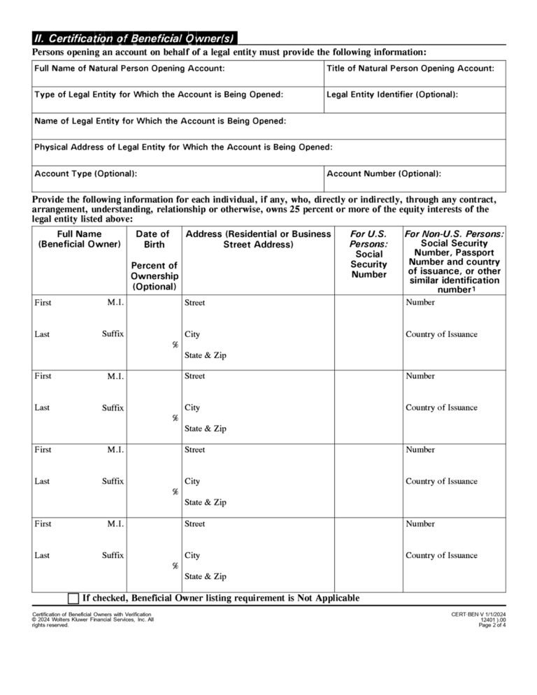 Beneficial Ownership Form Template