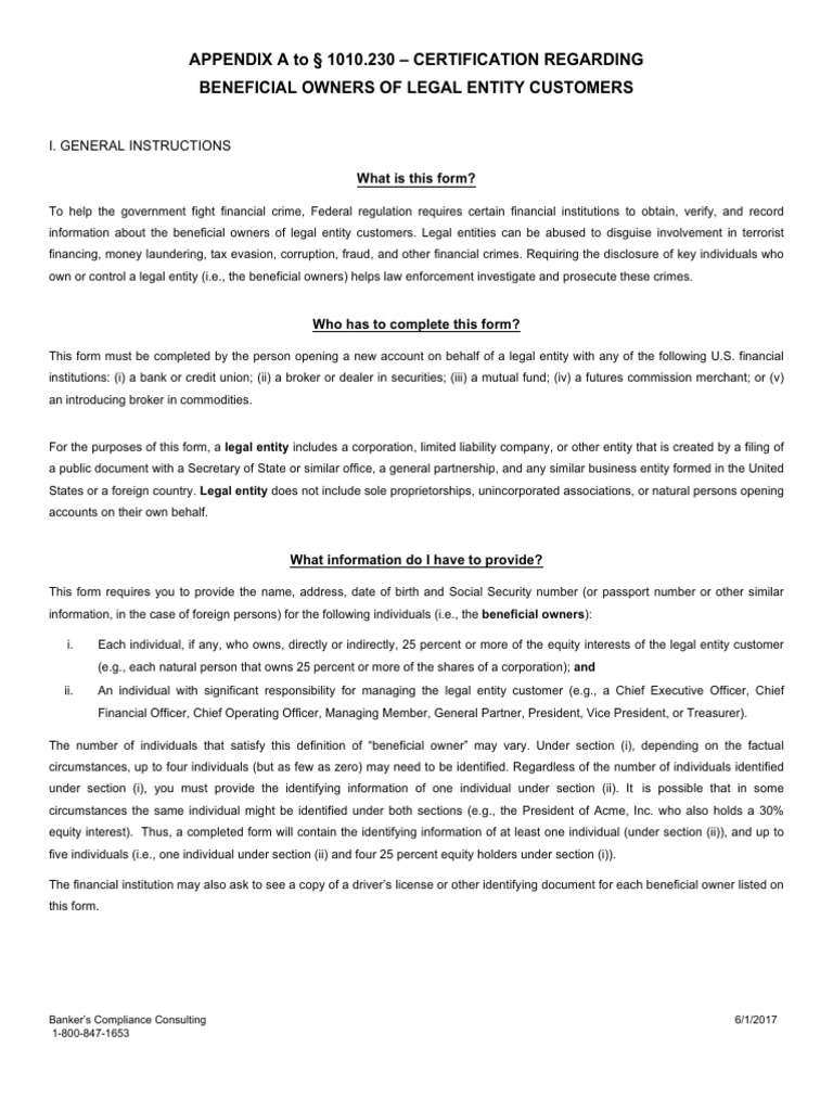 Fillable Online Beneficial Owners of Legal Entity Customers Memo and