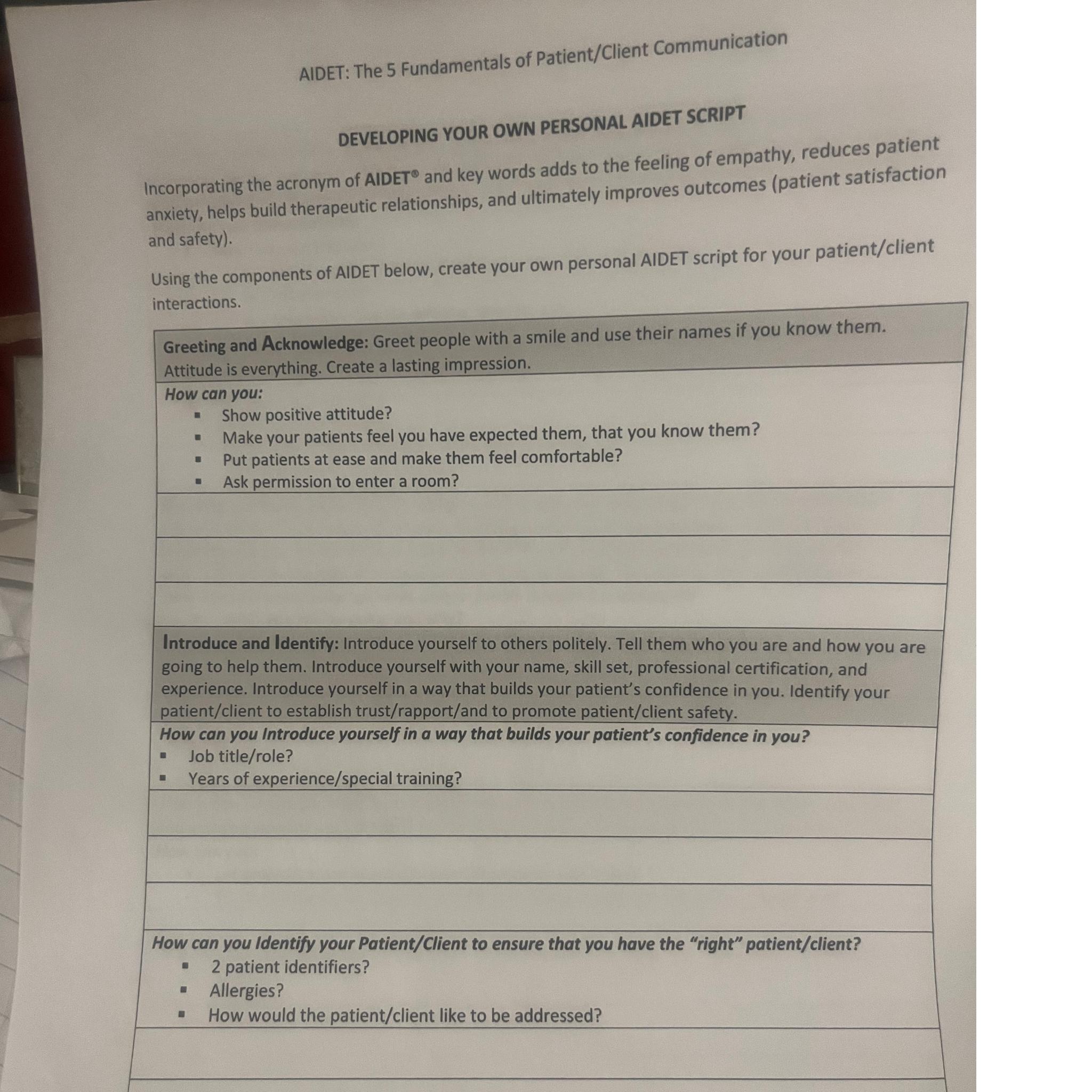 Solved AIDET: The 5 Fundamentals of Patient/Client Chegg com