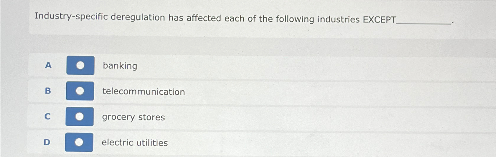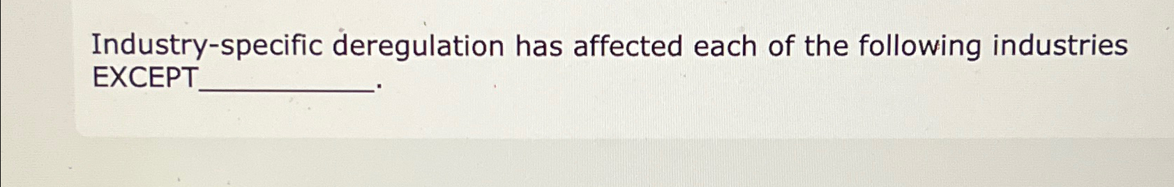 Solved Industry specific deregulation has affected each of Chegg com