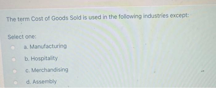 Solved The term Cost of Goods Sold is used in the following Chegg com