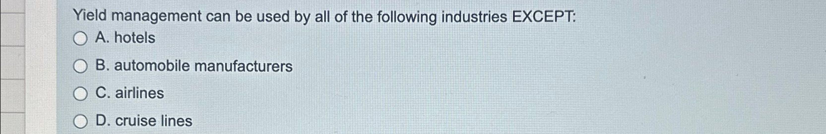 Solved Yield management can be used by all of the following Chegg com