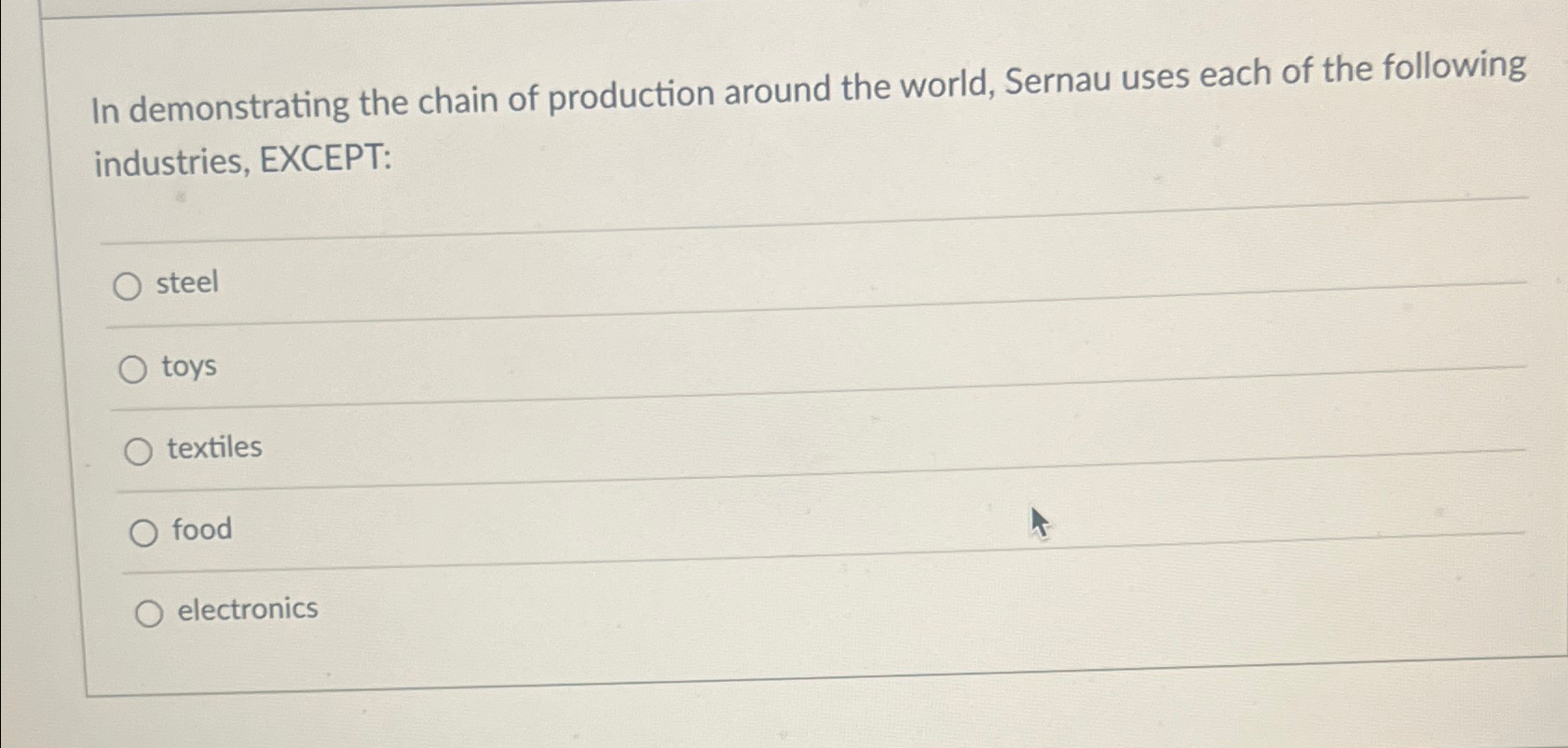 Solved In demonstrating the chain of production around the Chegg com