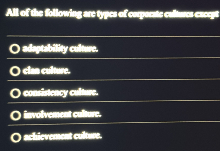 Solved: All of the following are types of corporate cultures except