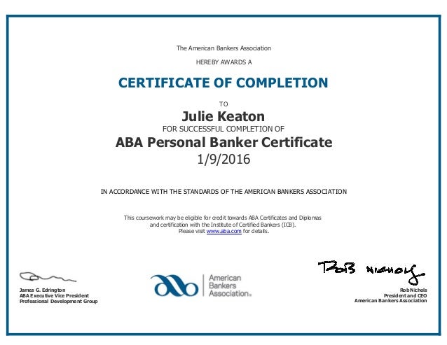 ABA Bank Teller Certificate