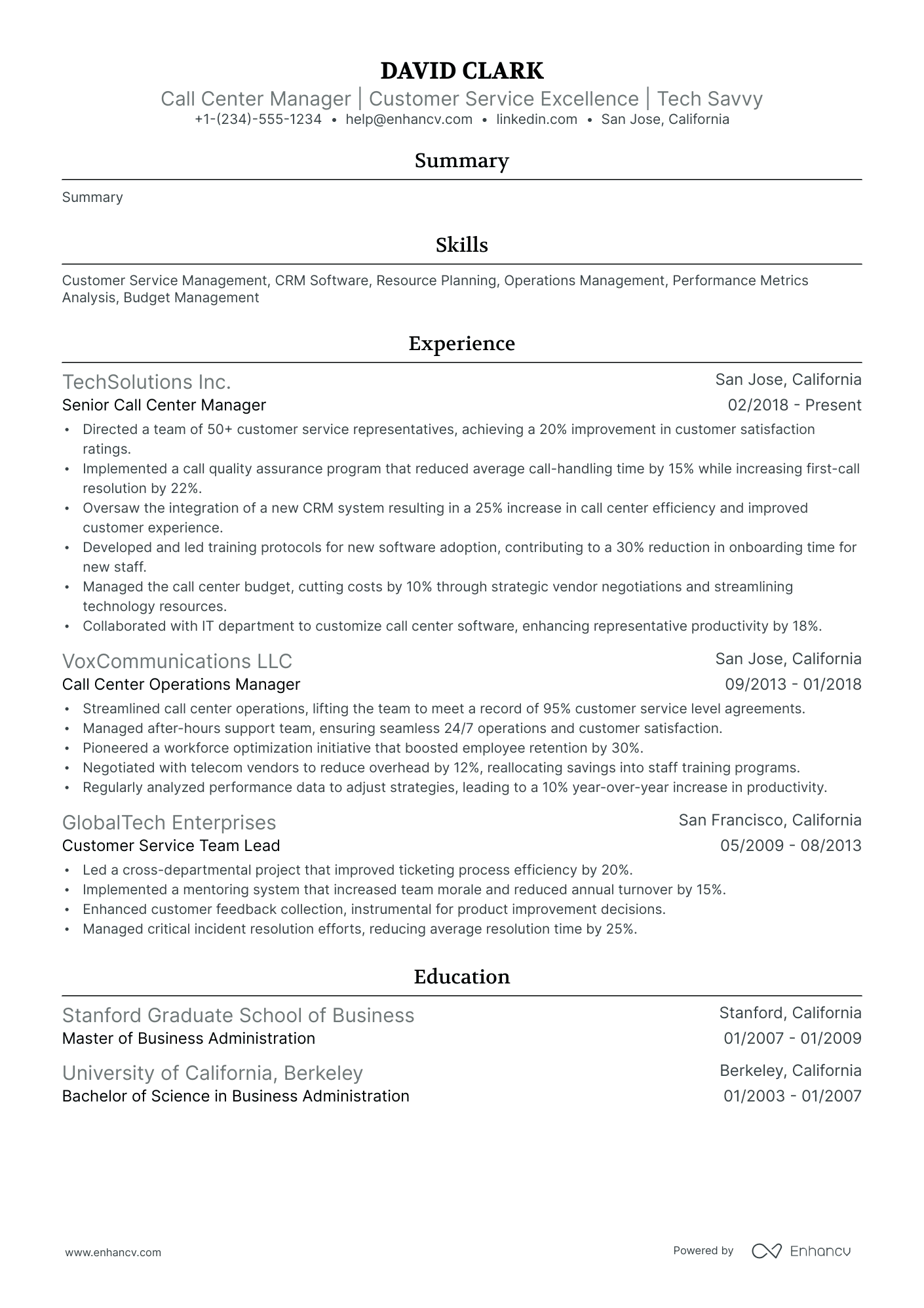Call Center Manager Resume Examples for 2025 Resume Worded