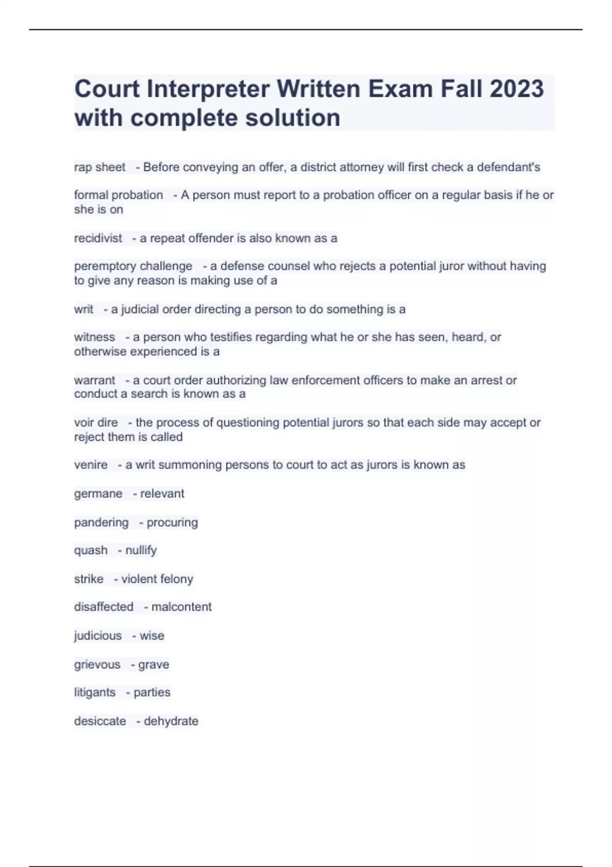 Court Interpreter Written Exam Fall 2023 with complete solution Court