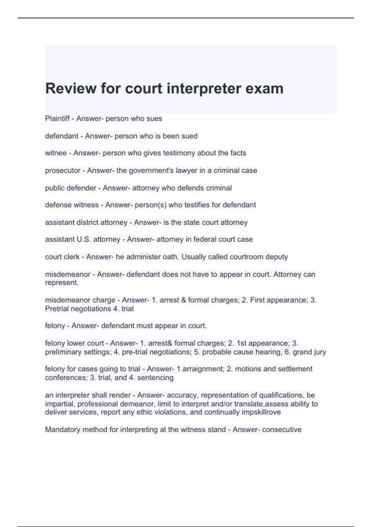 COURT INTERPRETER WRITTEN EXAM Court Interpreter Stuvia US