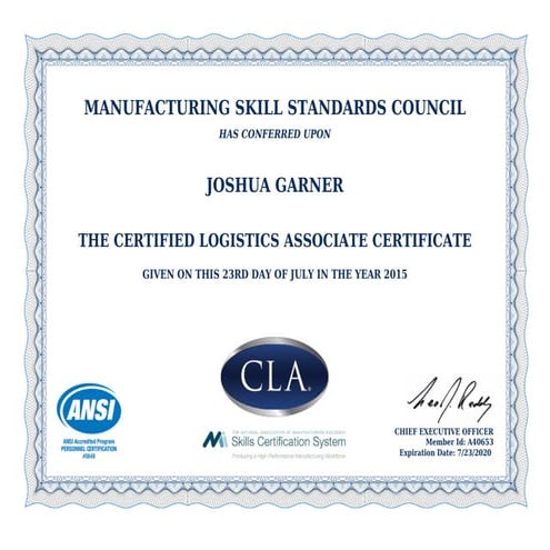 New Certified Logistics Associate (CLA) 4 0 Certified Logistics