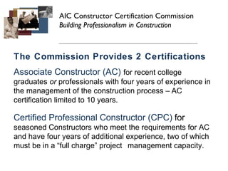 About Certification American Institute of Constructors