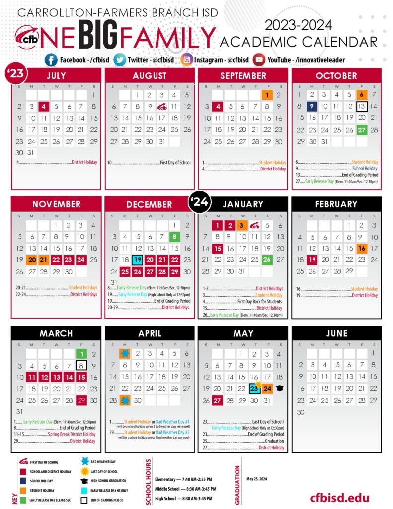 Carrollton Farmers Branch ISD Calendar 2024 2025 in PDF School