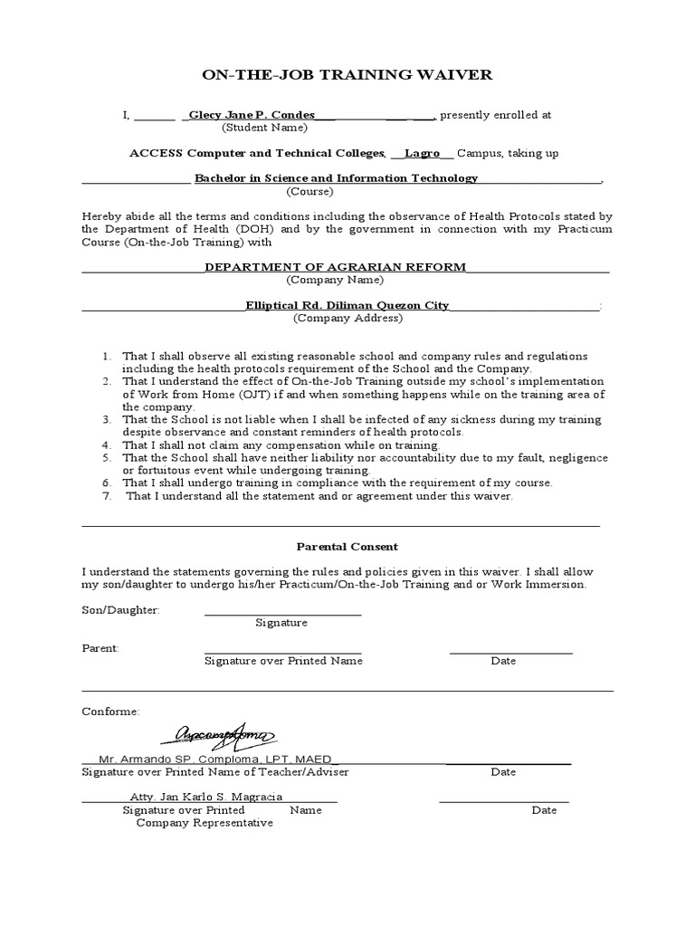On The Job Training Waiver: Presently Enrolled at PDF Common