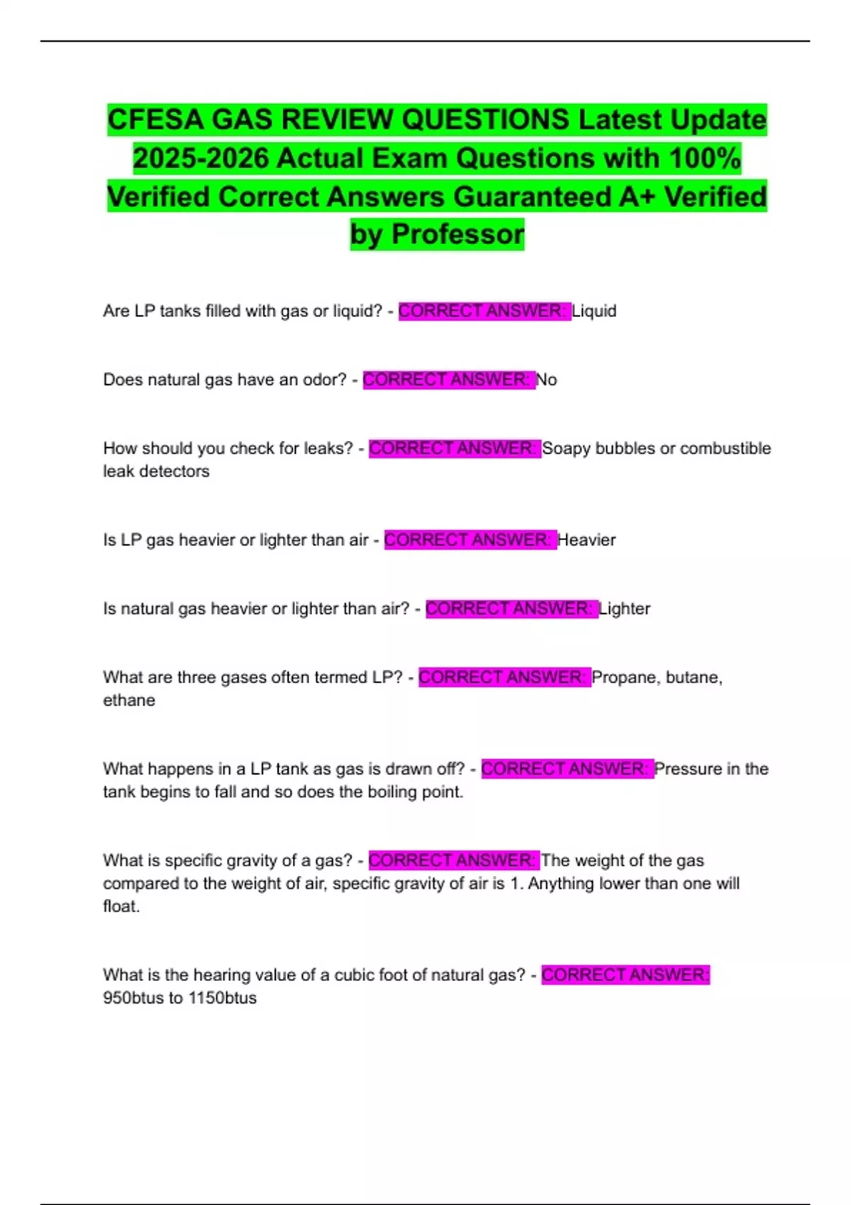 CFESA GAS REVIEW QUESTIONS Latest Update Actual Exam Questions with 100