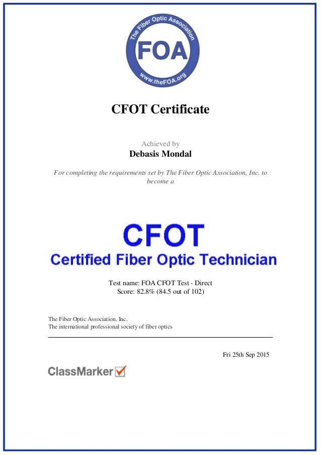 #cfot #cfoss #foa #schooloftelecoms #fiberoptic #certification #cfot #