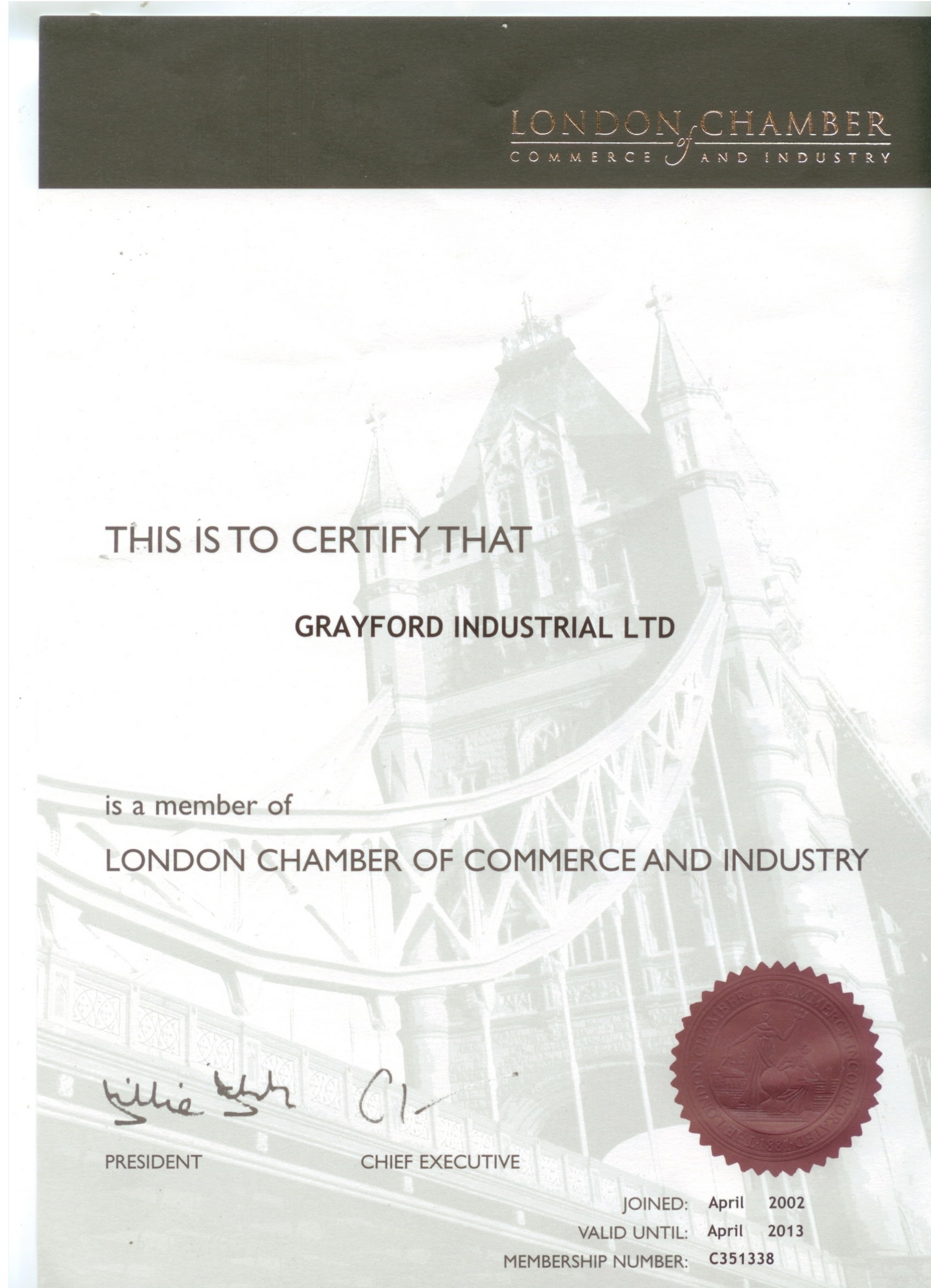 Chamber of Commerce Certificate Delta Pacific Valves UK