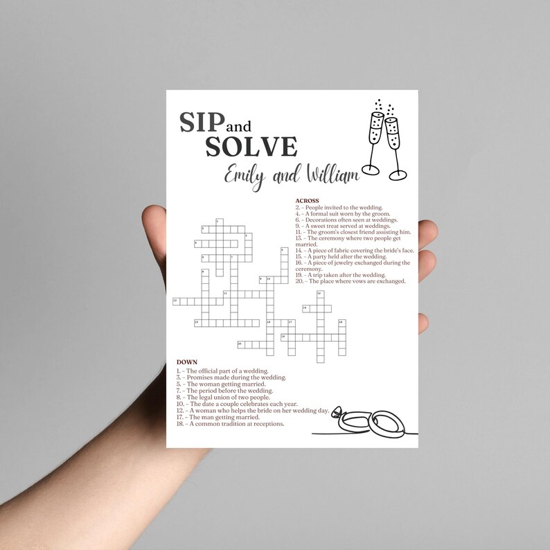 Custom Wedding Crossword Puzzle Template: Sip Solve Game (digital