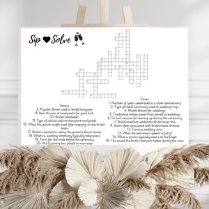 Sip and Solve Wedding Crossword Sign Custom Bridal Shower Puzzle