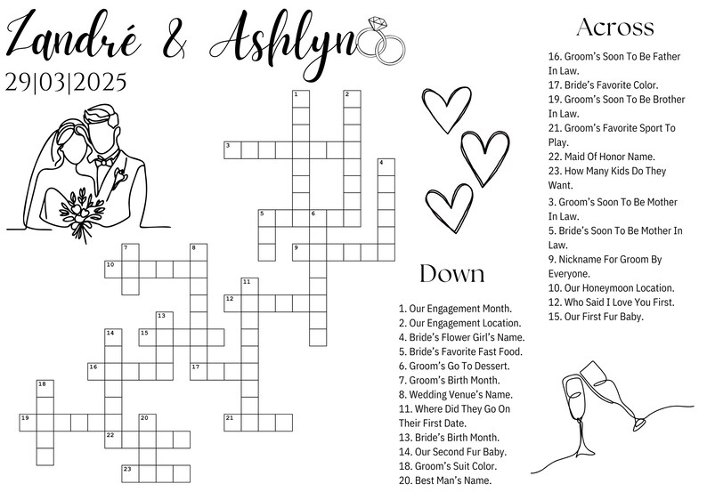 Wedding Crossword Puzzle Sip and Solve Game Custom Wedding Activity