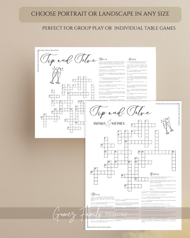 Wedding Crossword Puzzle Sip and Solve Game Custom Wedding Activity