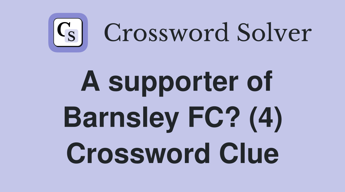 A supporter of Barnsley FC? (4) Crossword Clue Answers Crossword Solver
