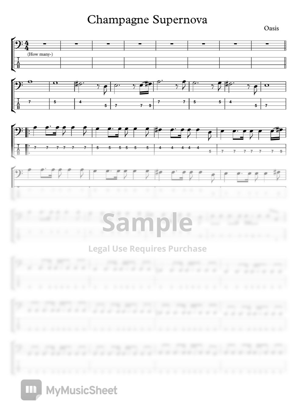 Oasis Champagne Supernova Sheets by BassTabsWorld