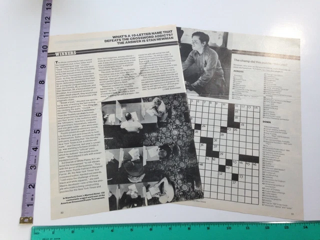 VINTAGE MAGAZINE CLIPPING Stan Newman Champion Crossword Puzzle 1982
