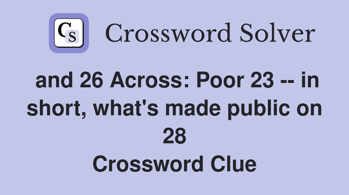 and 26 Across: Poor 23 in short what #39 s made public on 28