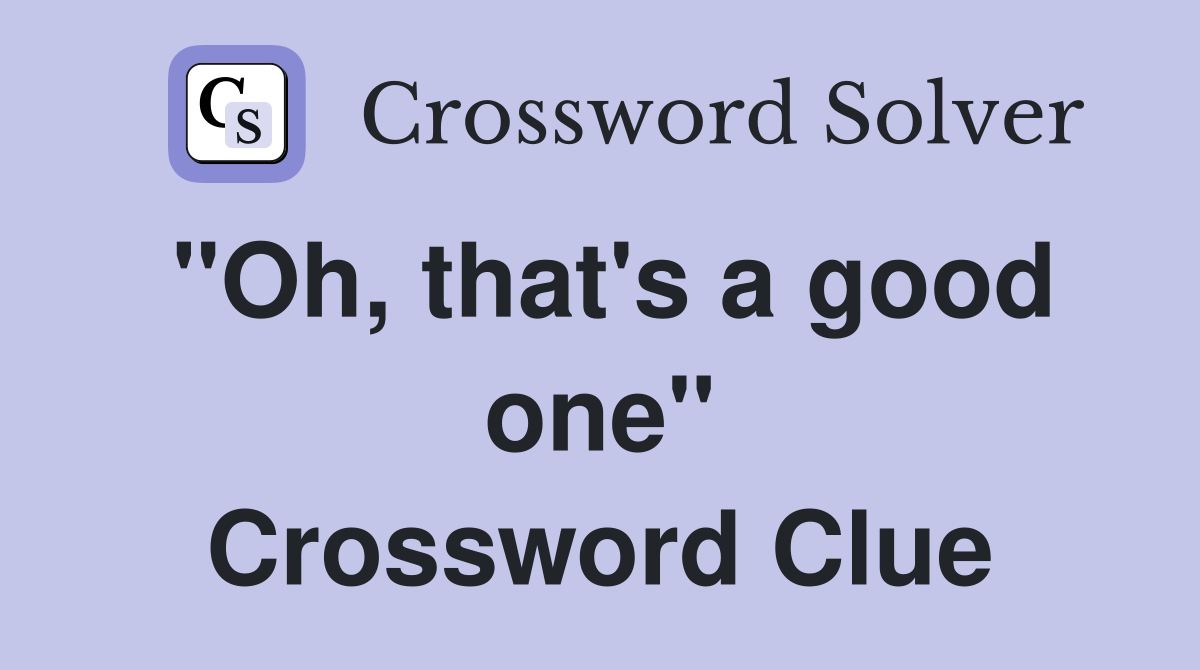 quot Oh that #39 s a good one quot Crossword Clue Answers Crossword Solver