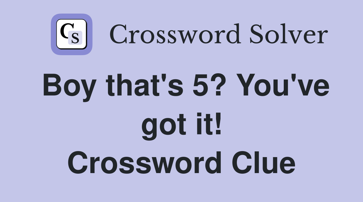 Boy that #39 s 5? You #39 ve got it Crossword Clue Answers Crossword Solver