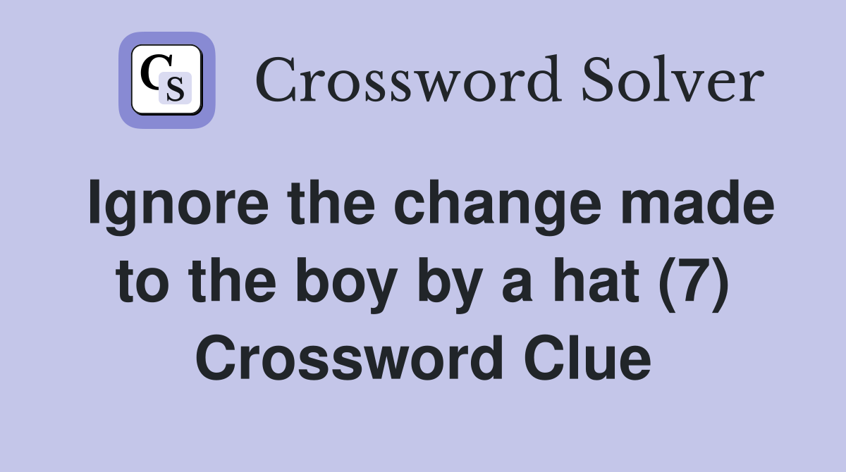 Ignore the change made to the boy by a hat (7) Crossword Clue Answers