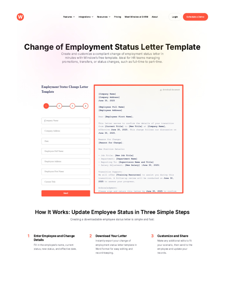 Free Change of Employment Status Letter Template Winslow
