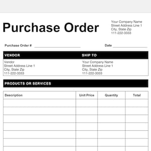 Purchase Order Template Pdf/google Docs/microsoft Word Etsy