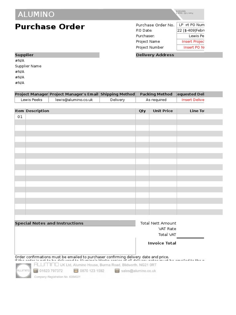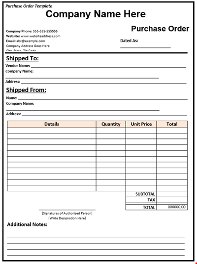 Purchase Order Template EDITABLE PRINTABLE Pdf/doc on Microsoft