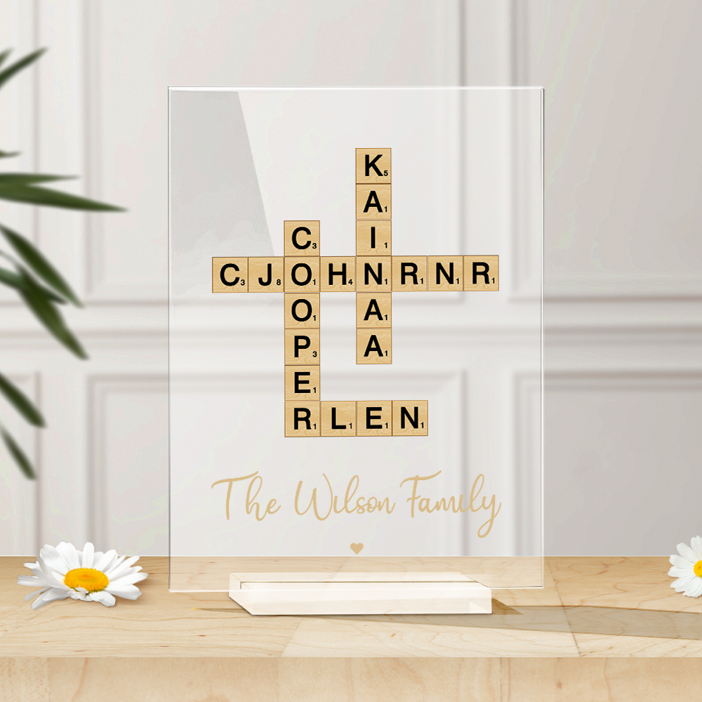 Personalised Names Family Crossword Art Wood Frame Painting with Stand
