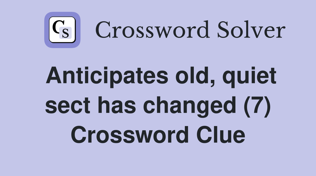 Anticipates old quiet sect has changed (7) Crossword Clue Answers