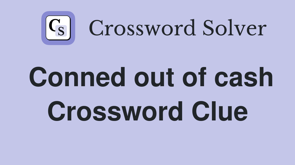 Conned out of cash Crossword Clue Answers Crossword Solver