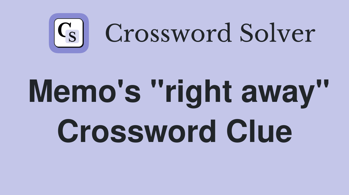 Memo #39 s quot right away quot Crossword Clue Answers Crossword Solver