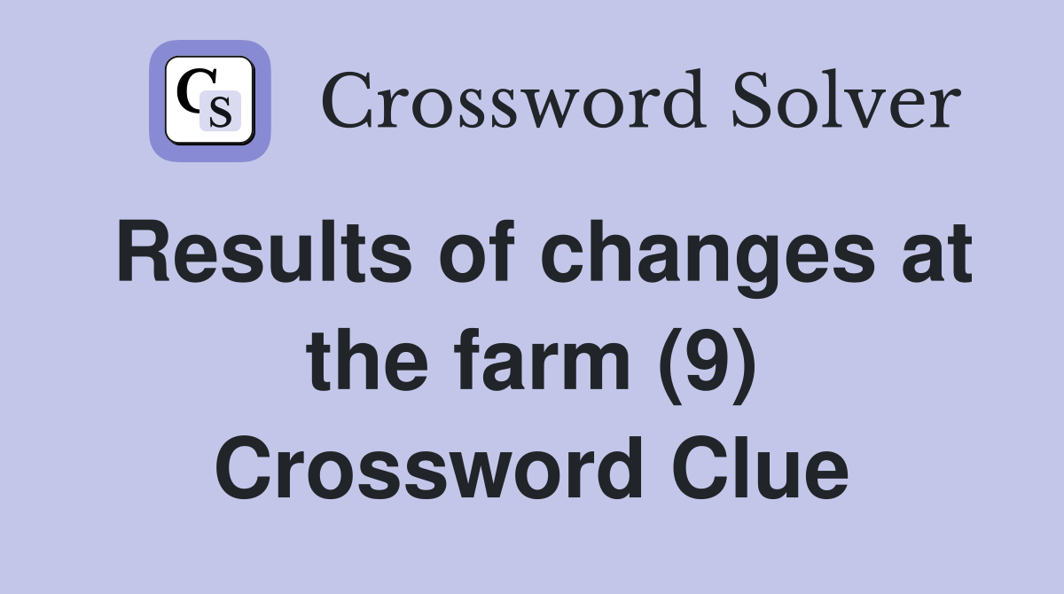 Results of changes at the farm (9) Crossword Clue Answers Crossword