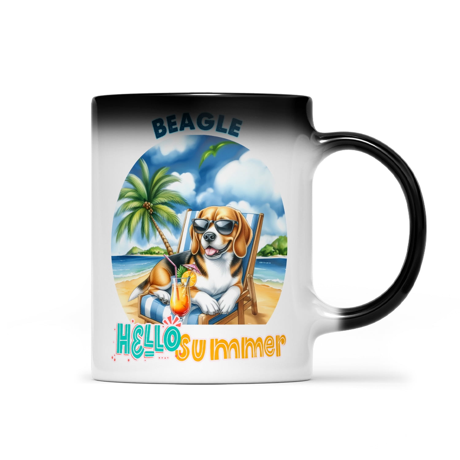 Beagle Hello Summer Beach Theme with Sunglasses and Tropical Cocktail