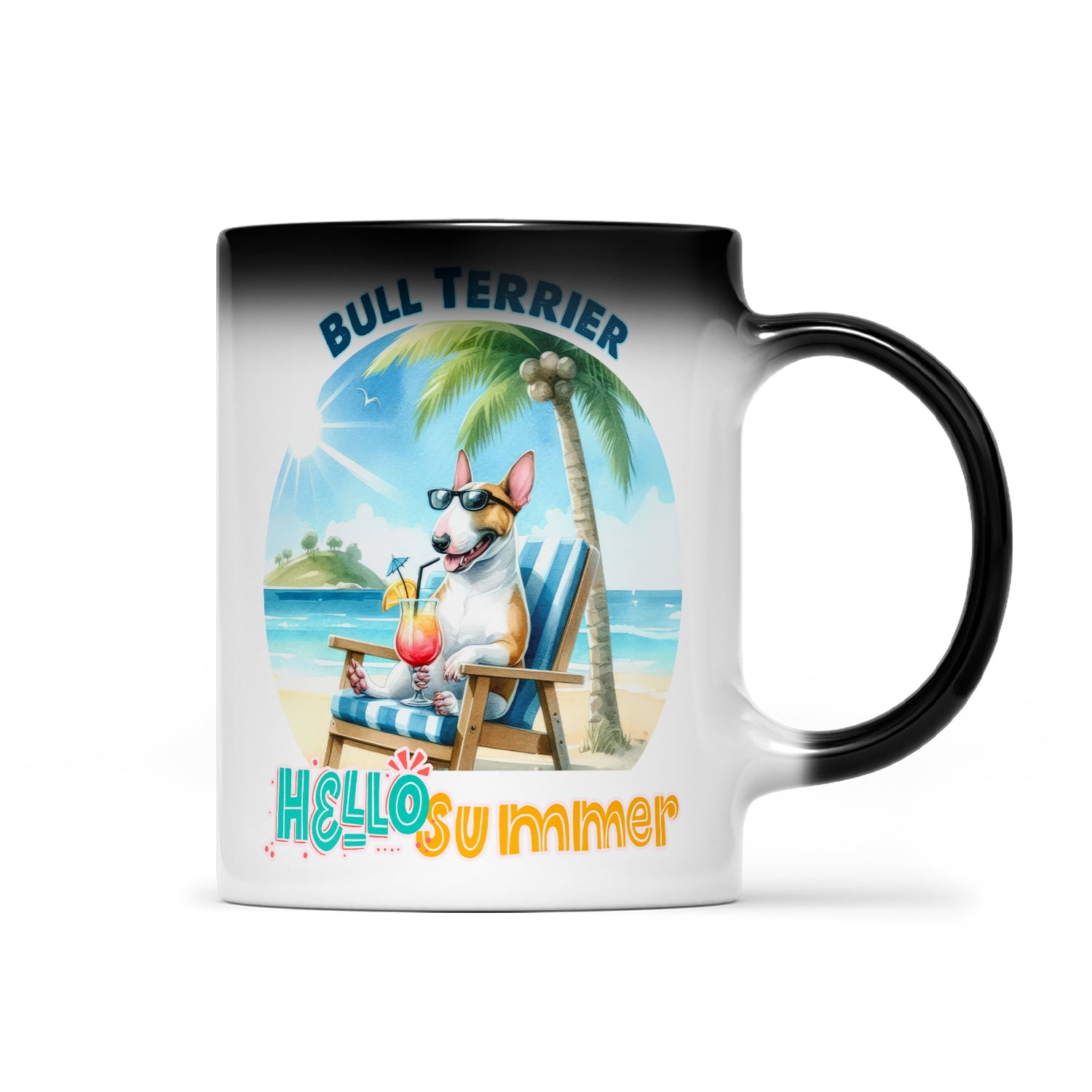 Bull Terrier Hello Summer Beach Theme with Sunglasses and Tropical