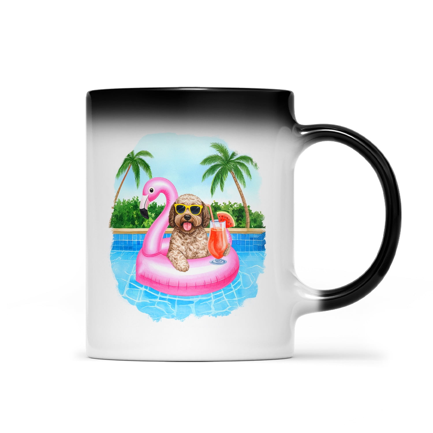 Hello Summer Portuguese Water Dog at Swimming Pool Flamingo Swim Ring